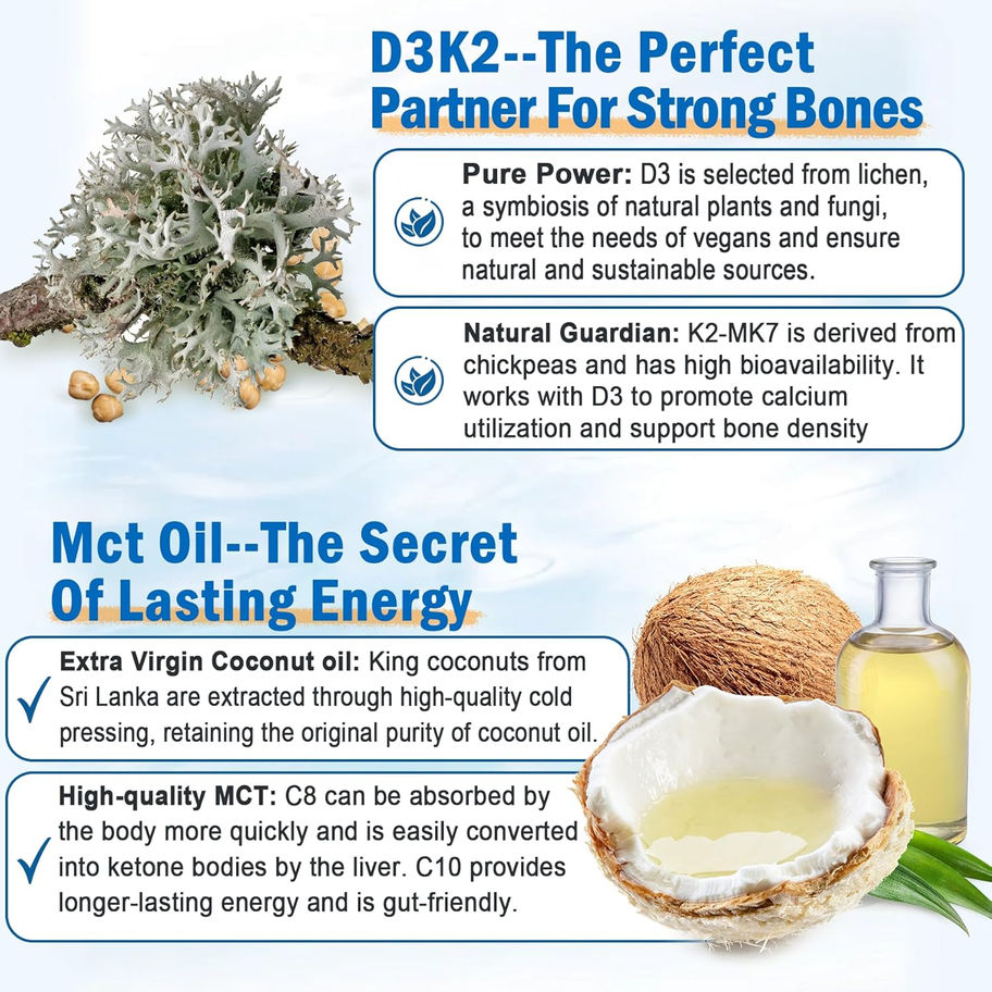 - Natural Combination, Added Benefits- Each serving delivers 600 mg of EPA and 400 mg of DHA sourced sustainably from Marine Algae. Algae omega 3 supplements provide a high-quality source of EPA and DHA, the two essential omega-3 fatty acids, in bioavailable forms that are easily utilized by the body. EPA and DHA are essential for optimal brain function, cognitive performance, and sharper eye function. Vitamin D3+ K2 support healthy immune system. That’s a whole lot of goodness